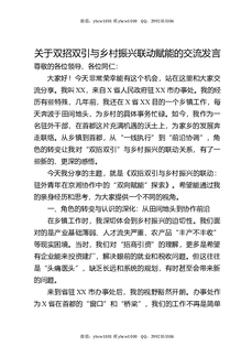 关于双招双引与乡村振兴联动赋能的交流发言.docx