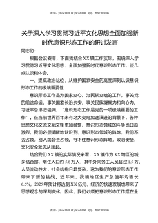 关于深入学习贯彻习近平文化思想全面加强新时代意识形态工作的研讨发言.docx