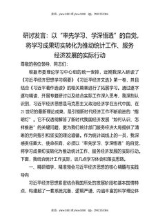 研讨发言:以“率先学习、学深悟透”的自觉,将学习成果切实转化为推动统计工作、服务经济发展的实际行动.docx