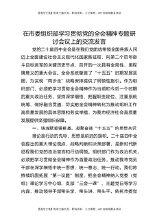 在市委组织部学习贯彻党的全会精神专题研讨会议上的交流发言.docx