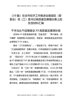 (10篇)在全市经济工作推进会暨县区(管委会)党(工)委书记高质量发展擂台赛上的发言材料汇编.docx