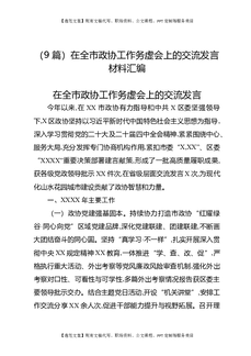 (9篇)在全市政协工作务虚会上的交流发言材料汇编.docx