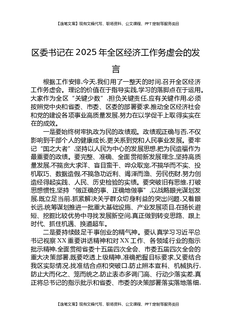 区委书记在2025年全区经济工作务虚会的发言.docx