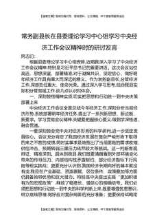 常务副县长在县委理论学习中心组学习中央经济工作会议精神时的研讨发言.docx