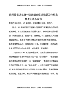 镇党委书记在第一巡察组巡察镇党委工作动员会上的表态发言.docx
