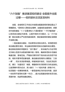 “六个加强”推进基层组织建设全面提升全面过硬——组织部长交流发言材料.docx