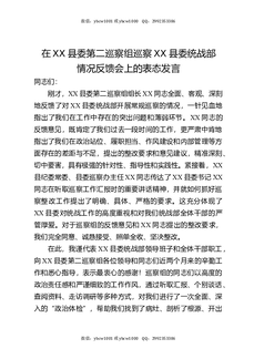 在XX县委第二巡察组巡察XX县委统战部情况反馈会上的表态发言.docx