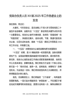 党政办负责人在XX镇2025年工作务虚会上的发言.docx