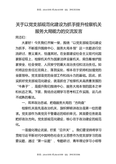 关于以党支部规范化建设为抓手提升检察机关服务大局能力的交流发言.docx