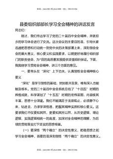 县委组织部部长学习全会精神的讲话发言.doc
