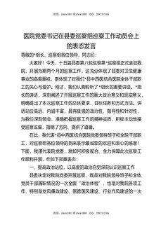 医院党委书记在县委巡察组巡察工作动员会上的表态发言.docx