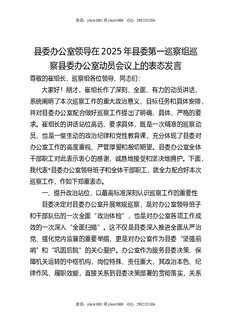 县委办公室领导在2025年县委第一巡察组巡察县委办公室动员会议上的表态发言.docx