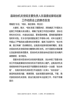 县政协机关党组主要负责人在县委巡察组巡察工作动员会上的表态发言.docx