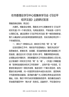 在市委理论学习中心组集体学习会《习近平经济文选》上的研讨发言.docx