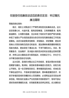 在接受任前廉政谈话后的表态发言:牢记嘱托廉洁履职.docx
