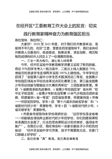 在经开区党工委教育工作大会上的发言:切实践行教育家精神,奋力为教育强区担当.docx