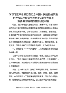 学习总书记在纪念中国人民抗日战争暨世界反法西斯战争胜利80周年大会上重要讲话精神的发言研讨材料.docx