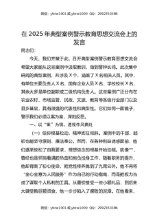 在2025年典型案例警示教育思想交流会上的发言
