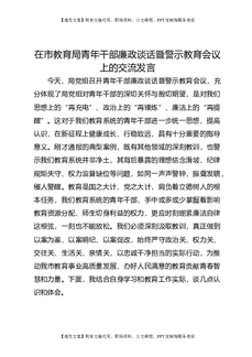 在市教育局青年干部廉政谈话暨警示教育会议上的交流发言.doc