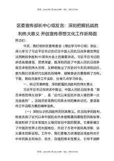 区委宣传部长中心组发言:深刻把握抗战胜利伟大意义开创宣传思想文化工作新局面.docx