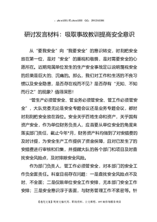 研讨发言材料:吸取事故教训提高安全意识.docx