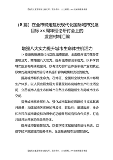 (8篇)在全市确定建设现代化国际城市发展目标XX周年理论研讨会上的发言材料汇编.docx
