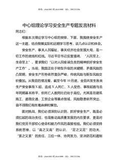 中心组理论学习安全生产专题发言材料.doc