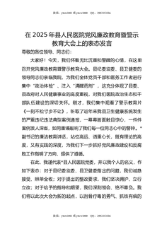 在2025年县人民医院党风廉政教育暨警示教育大会上的表态发言.doc
