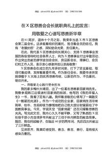 在X区慈善会会长就职典礼上的发言:用敬爱之心谱写慈善新华章.docx