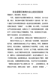 在全县警示教育大会上的交流发言.doc