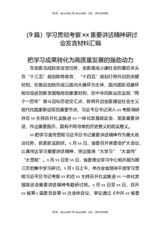 (9篇)学习贯彻考察XX重要讲话精神研讨会发言材料汇编.docx