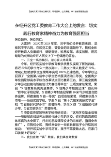 在经开区党工委教育工作大会上的发言:切实践行教育家精神奋力为教育强区担当.docx