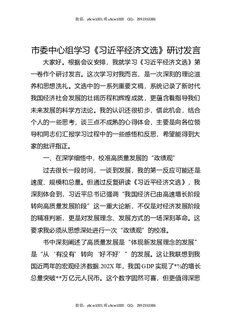 市委中心组学习《总书记经济文选》研讨发言.docx