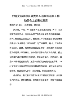 村党支部领导在县委巡察组巡察工作动员会上的表态发言.docx
