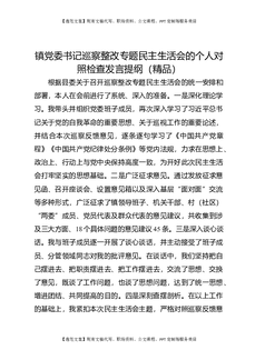 镇党委书记巡察整改专题民主生活会的个人对照检查发言提纲(精品).docx