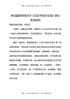 单位副职领导关于《习近平经济文选》研讨发言材料.docx