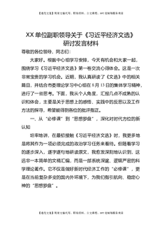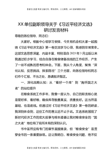 XX单位副职领导关于《总书记经济文选》研讨发言材料(1).docx