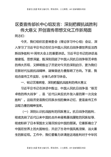 区委宣传部长中心组发言:深刻把握抗战胜利伟大意义,开创宣传思想文化工作新局面.docx