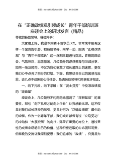 在“正确政绩观引领成长”青年干部培训班座谈会上的研讨发言(精品).docx