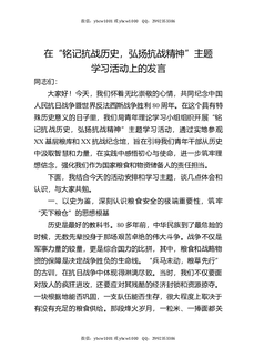 在“铭记抗战历史,弘扬抗战精神”主题学习活动上的发言.docx