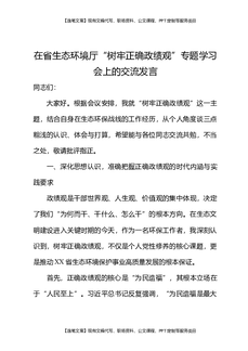 在省生态环境厅树牢正确政绩观专题学习会上的交流发言.docx
