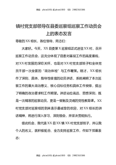 镇村党支部领导在县委巡察组巡察工作动员会上的表态发言.docx