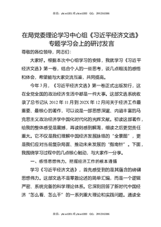 在局党委理论学习中心组《总书记经济文选》专题学习会上的研讨发言.docx