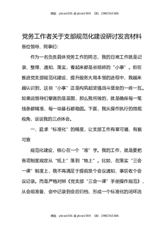党务工作者关于支部规范化建设研讨发言材料.docx