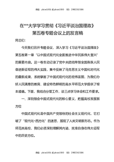 在XX大学学习贯彻《习近平谈治国理政》第五卷专题会议上的发言稿.docx