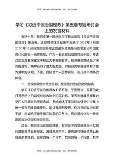 学习《总书记谈治国理政》第五卷专题研讨会上的发言材料.docx
