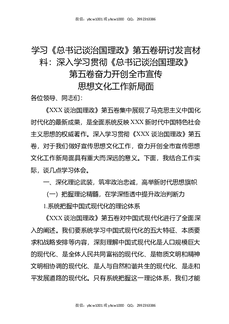 学习《总书记谈治国理政》第五卷研讨发言材料:深入学习贯彻《总书记谈治国理政》第五卷奋力开创全市宣传思想文化工作新局面.docx