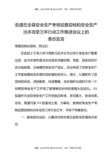 街道在全县安全生产考核巡查迎检和安全生产治本攻坚三年行动工作推进会议上的表态发言.docx