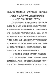 在中心组专题研讨会上的发言材料:常研常得真正把学习成果转化为坚定的理想信念(《习近平谈治国理政》第五卷).docx