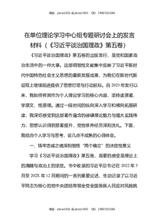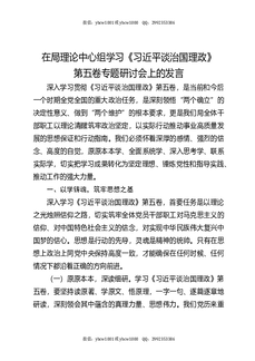 在学习《谈治国理政》第五卷专题研讨会上的发言讲话材料.docx